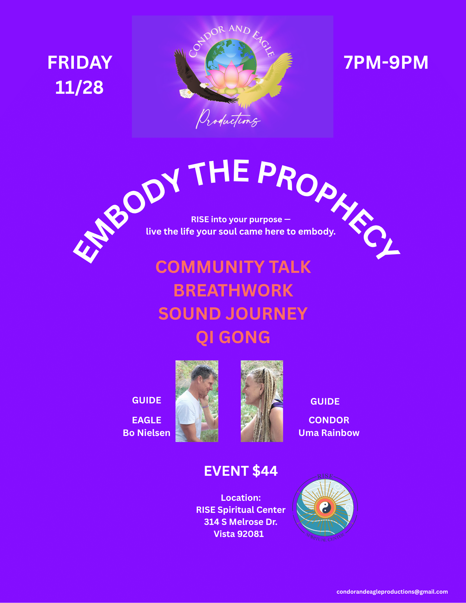 This retreat is a call to embody the prophecy not as an idea, but as a lived experience—balancing the sacred feminine and masculine, the intuitive and the intellectual, the earth and the sky. Through breath, movement, and sound, we rise together into unity, peace, and higher vision.