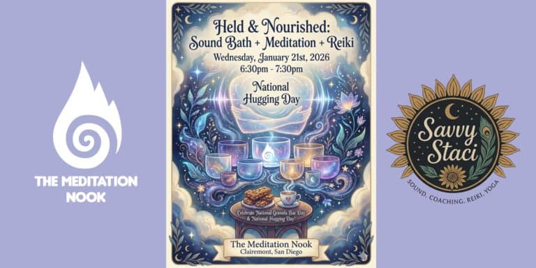 In honor of National Hugging Day, gentle human connection will be offered throughout the experience. You will be offered a hug when you arrive, a group hug at the end, and a hug before you depart. All hugs are completely voluntary, and you are always welcome to participate in the way that feels best for you.