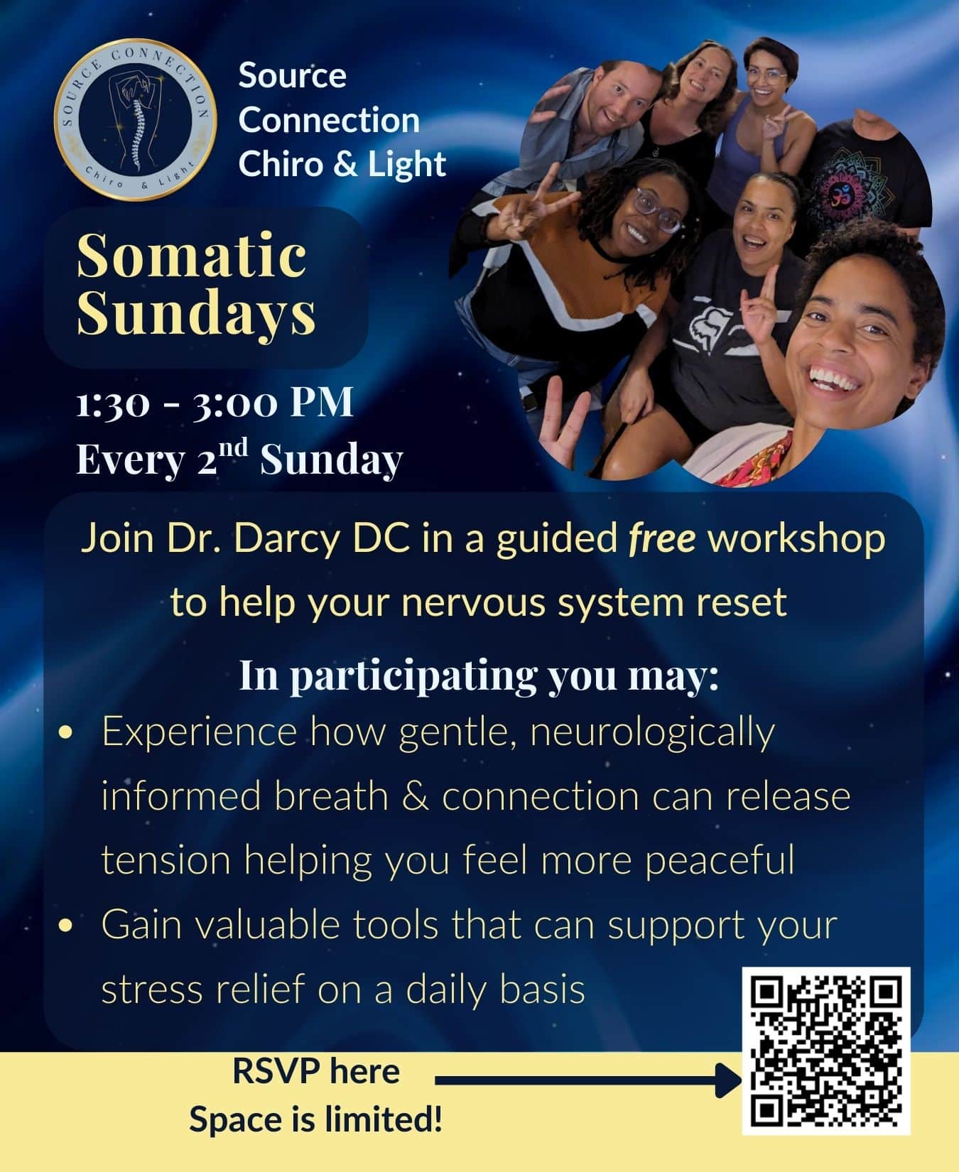 This is your opportunity to hit a monthly reset for your nervous system. Dr. Darcy DC will integrate somatic breathwork (SRI), journaling prompts, and music journeys, you’ll reconnect with your body’s wisdom and the seasonal energies that support you most.